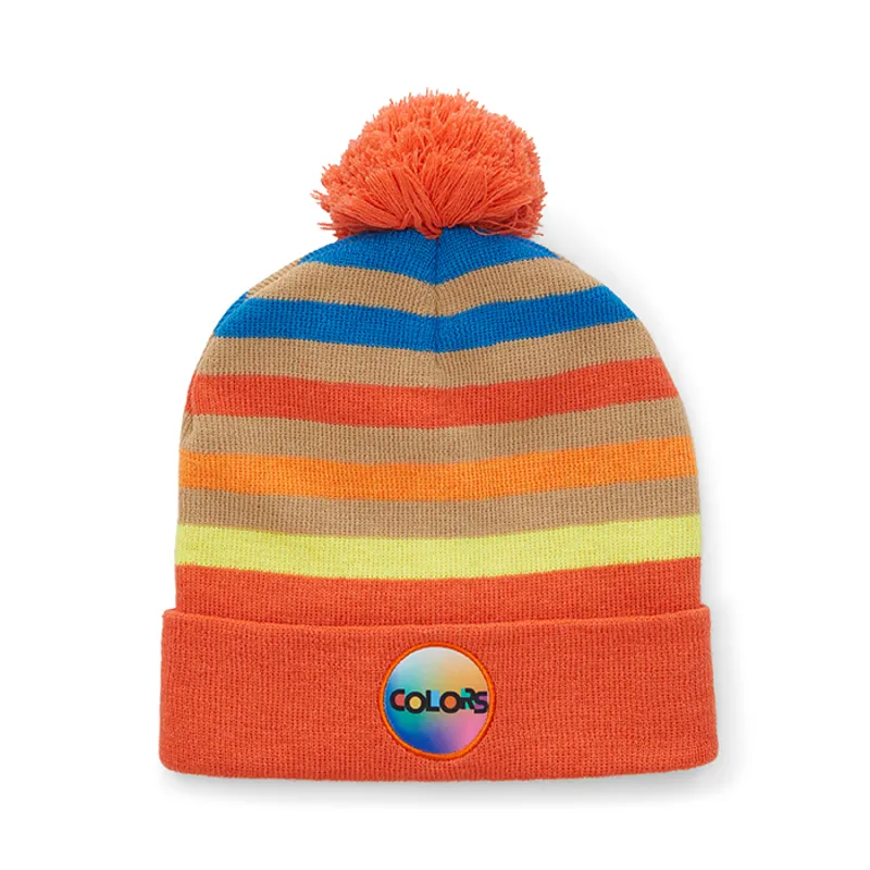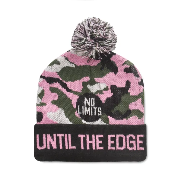 Egyedi mintás, RPET jacquard mandzsettás kötött sapka pomponnal.