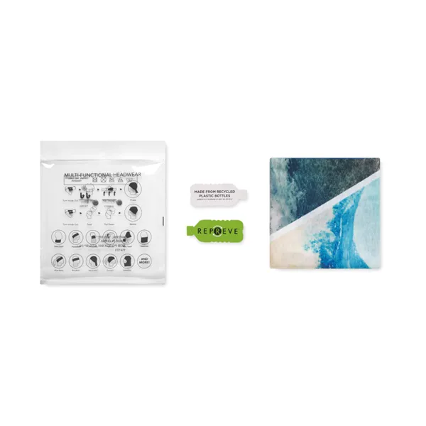 Egyedi REPREVE® multifunkciós csősál, nyomtatással a teljes felületén.