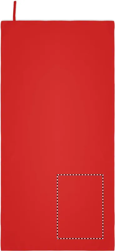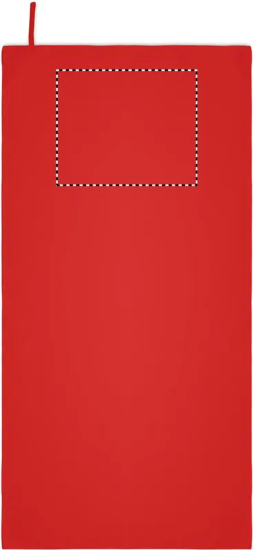 Mikroszálas törölköző 90% poliészterből és 10% poliamidból, rugalmas pánttal. Könnyű és gyorsan szárad. Méret: 50x100 cm.