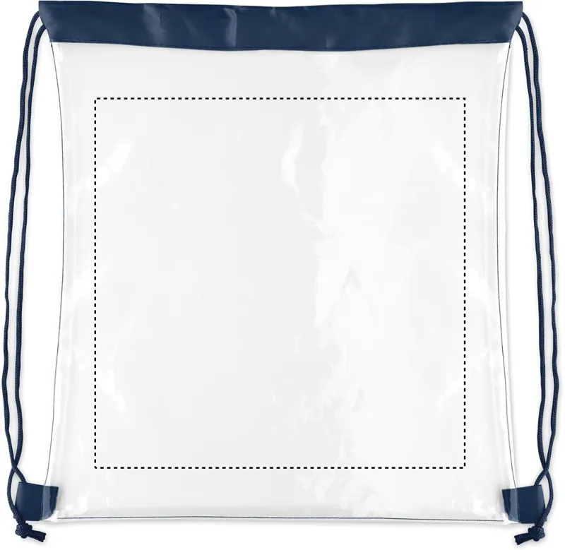 Átlátszó húzózsinóros táska EVA és PVC anyagból. Poliészter zsinórral.