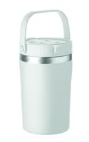 Duplafalú, újrahasznosított rozsdamentes acél (90% újrahasznosított rozsdamentes, 10% rozsdamentes acél) pohár PP 2 az 1-ben ivónyílással és szívószálas fedéllel. Szivárgásmentes. Űrtartalom: 350 ml.