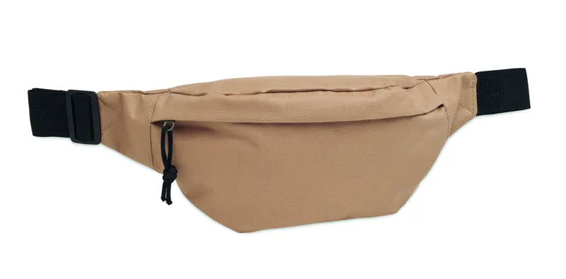 Övtáska 600D RPET poliészterből, cipzáras fő rekesszel és rejtett cipzáras hátsó rekesszel.