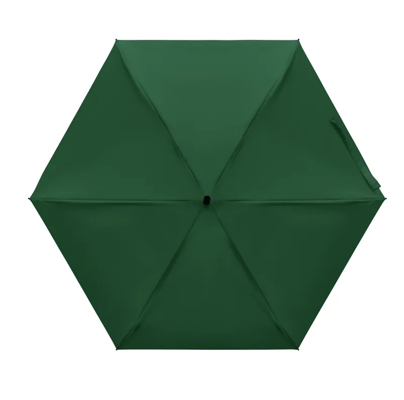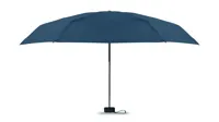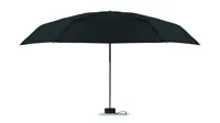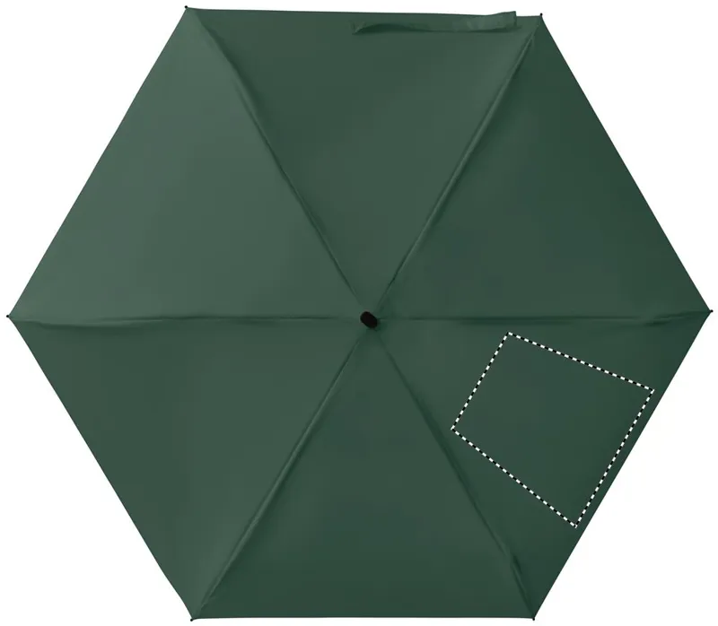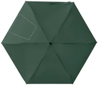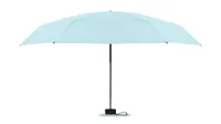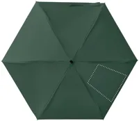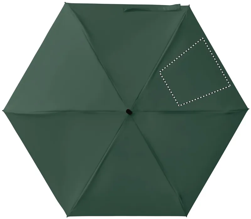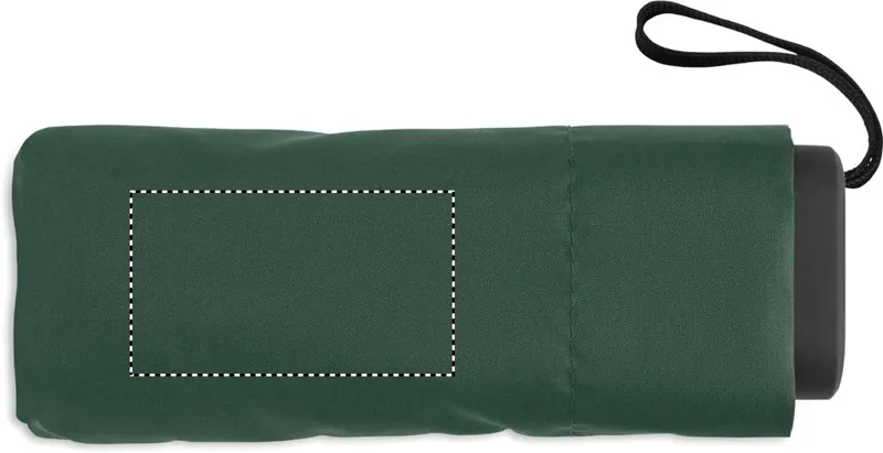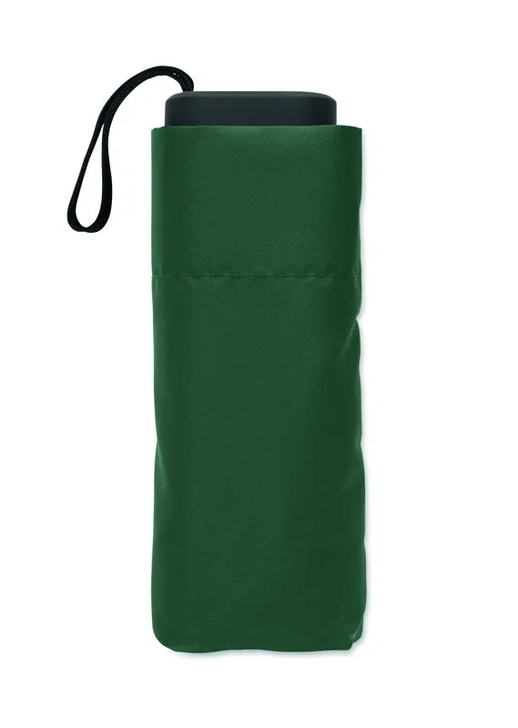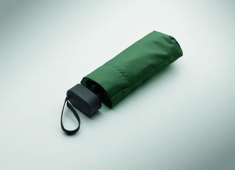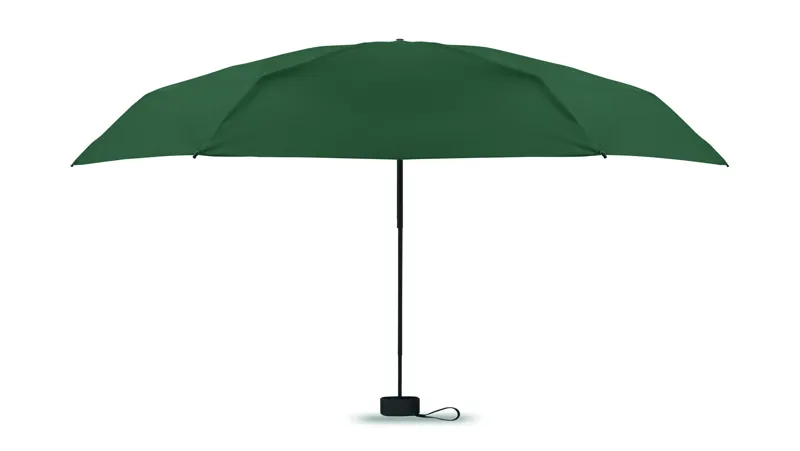 19 colos, 5 szakaszos összecsukható, kézzel nyitható esernyő 190T pongee anyagból, színazonos tokban. Fém és üvegszálas szélálló váz, fekete gumírozott markolat, csuklópánt. Összecsukott méret: 17 cm.