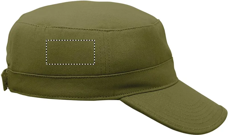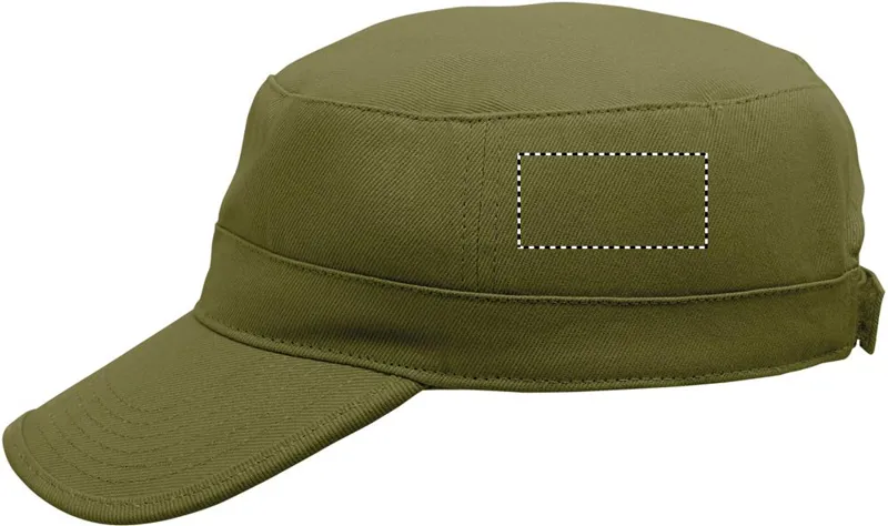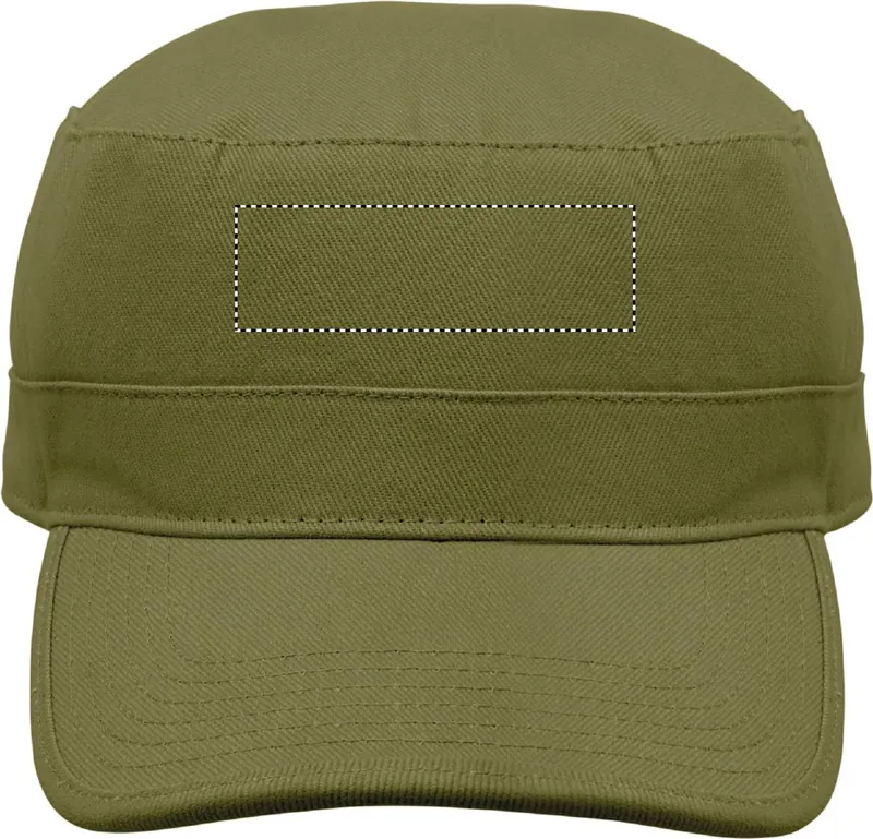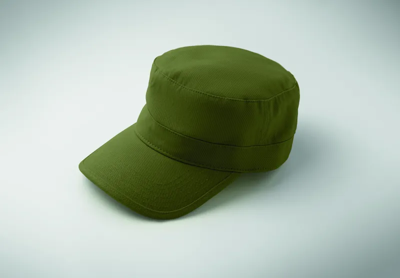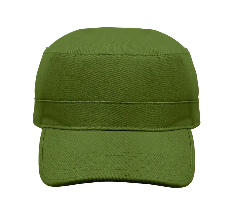 Katonai stílusú sapka 260 g/m² fésült pamutból, poliészter izzadságfelszívó pánttal, állítható tépőzáras záródással.