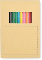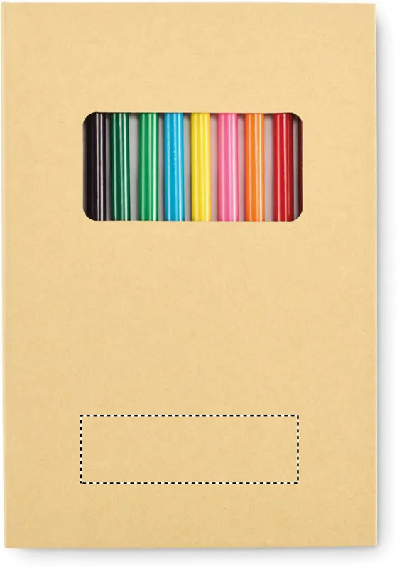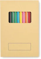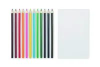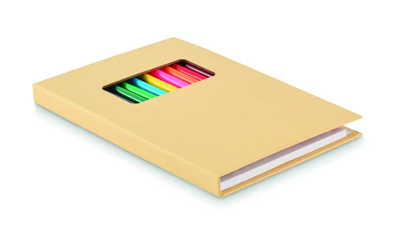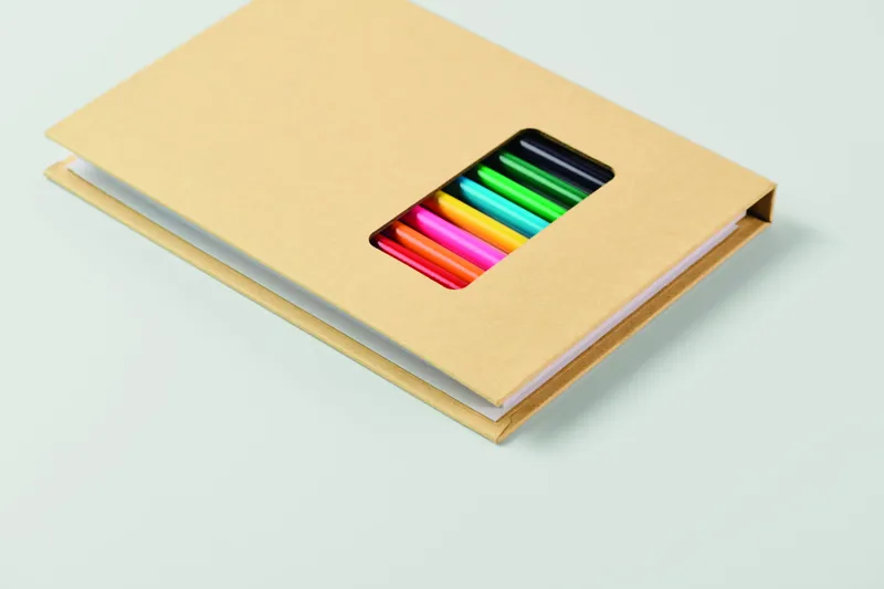 Gyermek rajzkészlet 50 újrahasznosított papírlappal és 12 fa színesceruzával. Kraftpapír borítóval.
