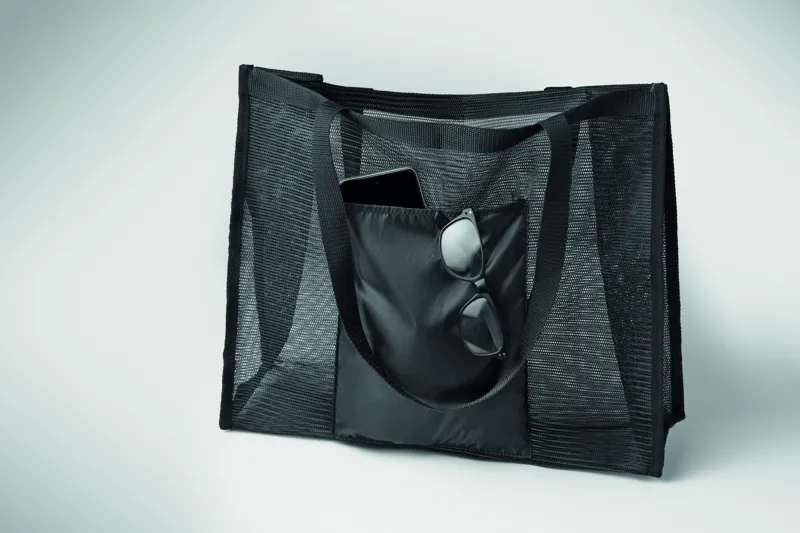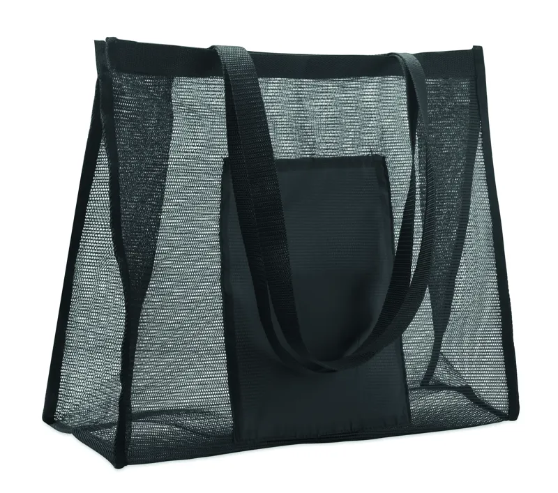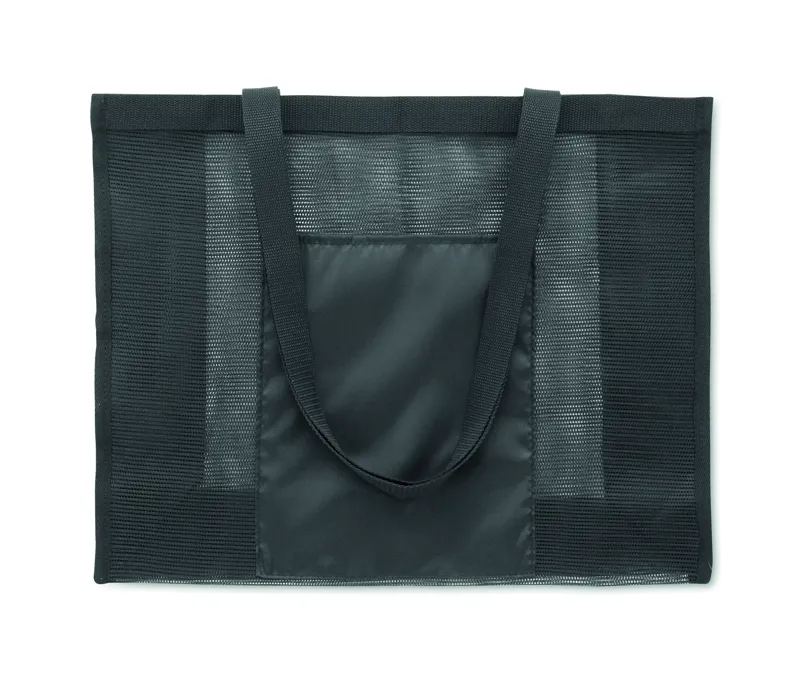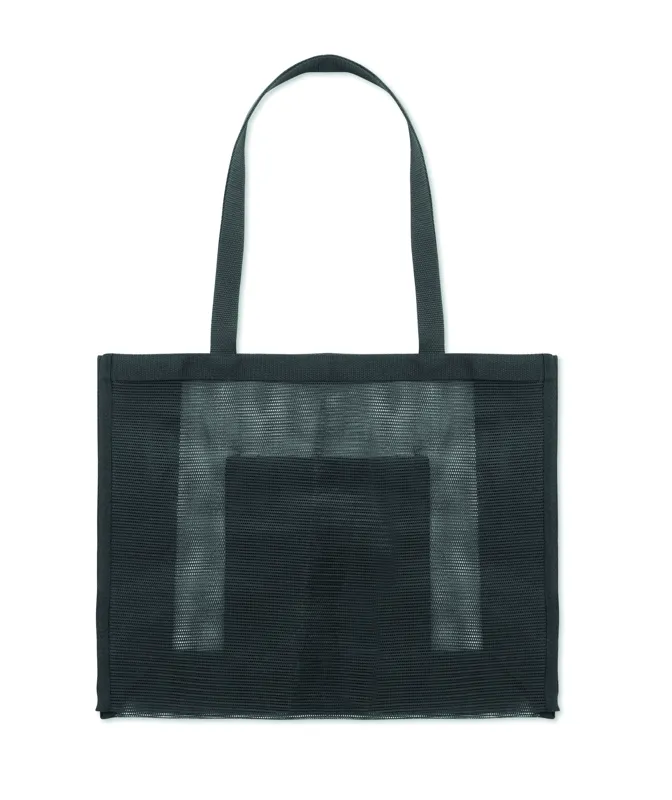 Bevásárlótáska RPET hálóból és 210D RPET anyagból, rövid fülekkel. Nagy, nyitott elülső zsebbel. Kapacitás: 20 l, teherbírás: 10 kg.