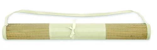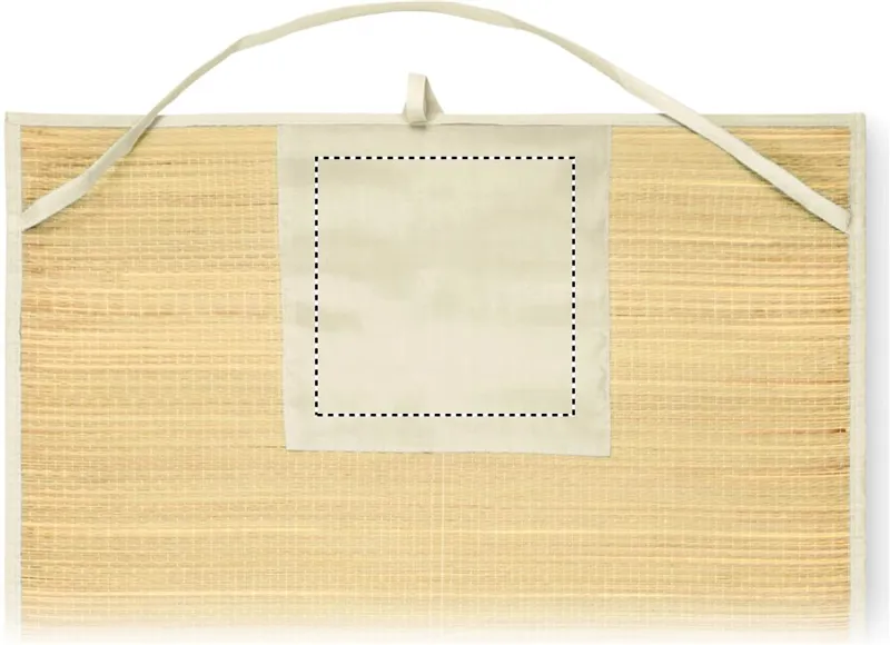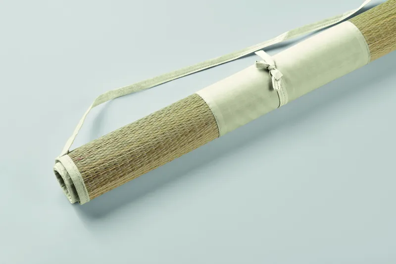 Természetes szalmából készült, feltekerhető strandszőnyeg poliészter hordpánttal.