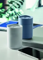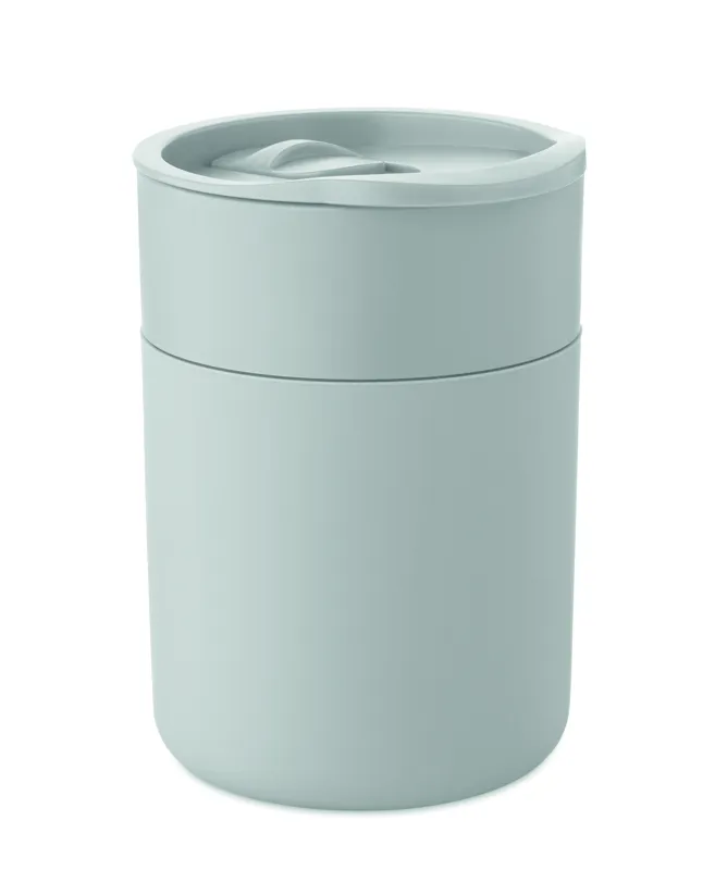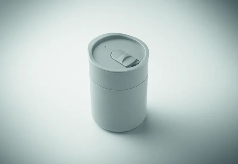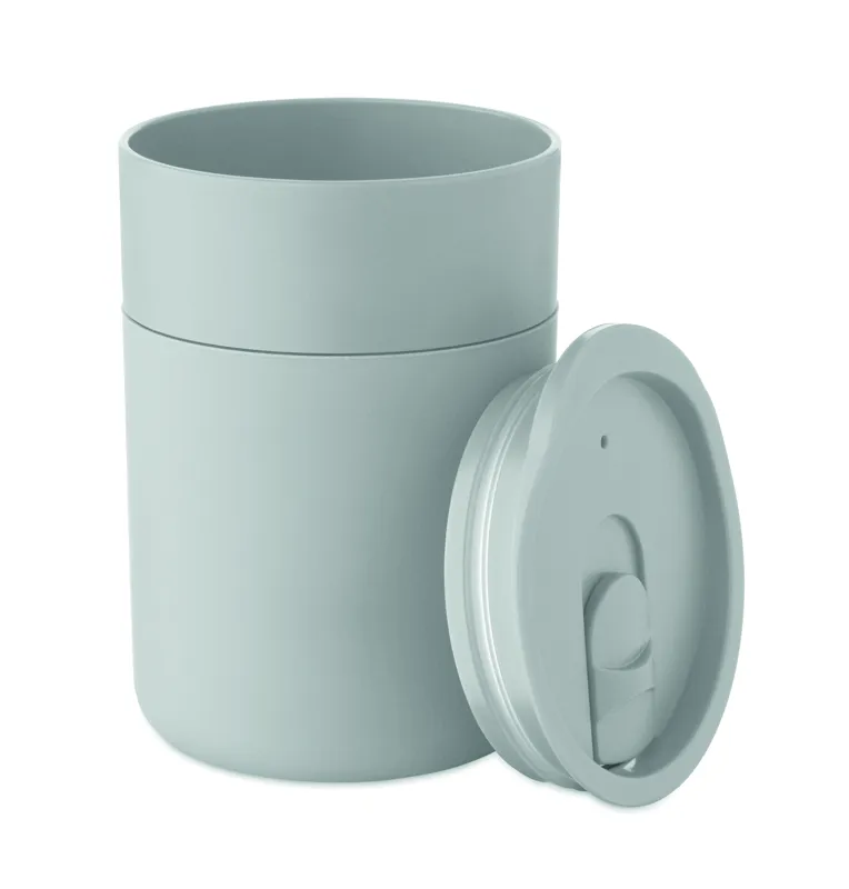 PP pohár szilikon tokkal és csúsztatható PP fedéllel. Űrtartalom: 330 ml. Mivel ez egy szimplafalú pohár, hőátadás előfordulhat.