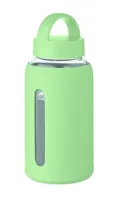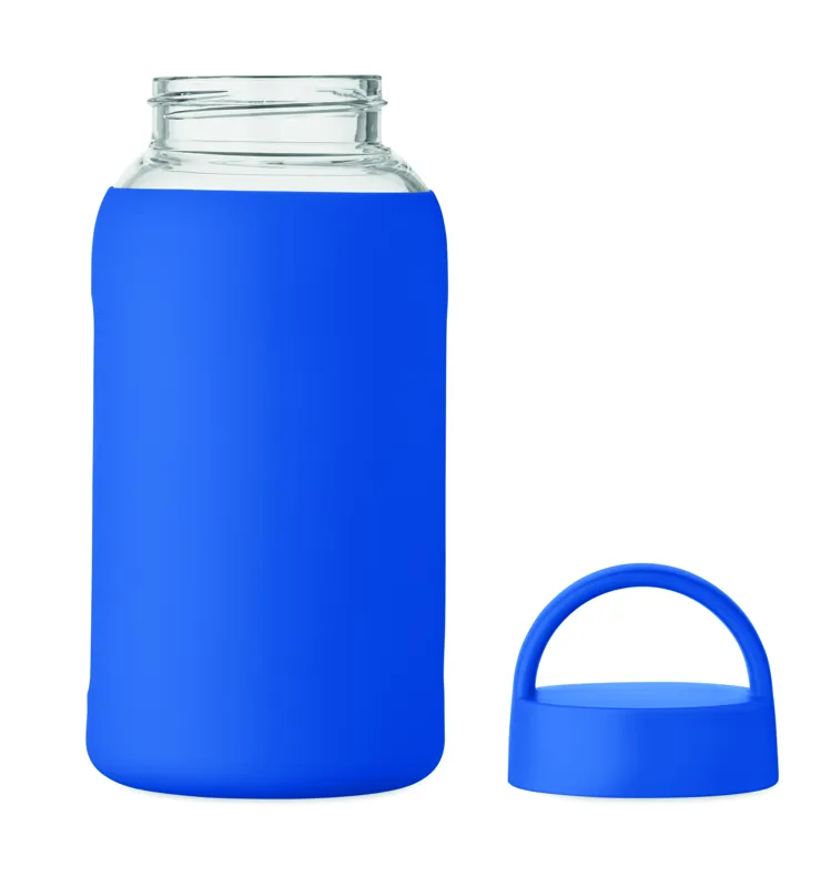 Boroszilikát üveg palack szilikon tokkal és fogantyús PP fedéllel. Űrtartalom: 600 ml.