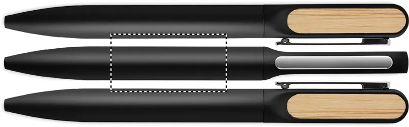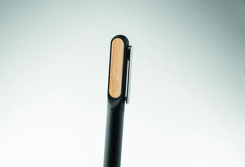 Csavarzáras golyóstoll újrahasznosított alumínium tolltesttel, újrahasznosított ABS csavaros résszel és bambusz díszítésű fém csíptetővel. Kéken író betéttel.