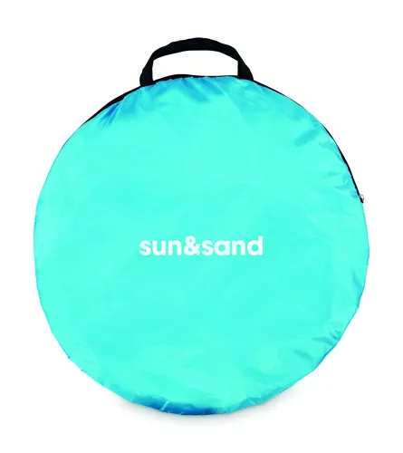 Kétszemélyes strandsátor 190T poliészterből. 6 acél kampóval és hozzáillő hordtáskával. Könnyű, egyszerűen felállítható, árnyékot és kényelmet biztosít a szabadban.