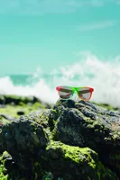 Színes napszemüveg PC kerettel és UV400 védelemmel.