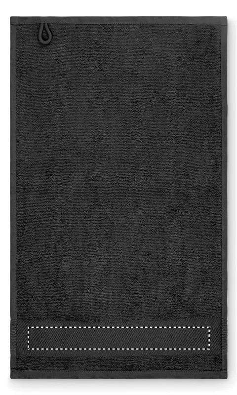 Vendégtörölköző 380 g/m² vastag, 100% pamut anyagból, pamut akasztóval. Puha és nedvszívó kivitel. Méret: 30×50 cm.