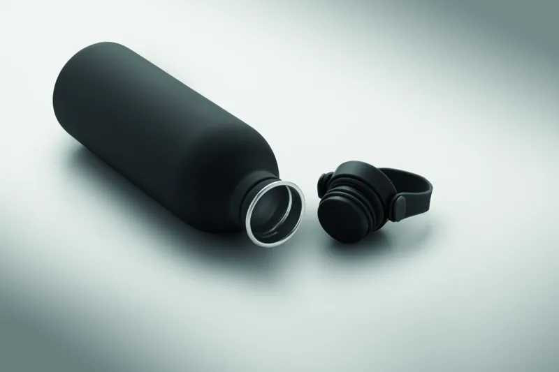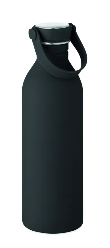 90% újrahasznosított rozsdamentes acél és 10% acél szimplafalú palack, gumírozott felülettel. PP és rozsdamentes acél fedél, szilikon fogantyú. Űrtartalom: 500 ml. Szimplafalú, hőátadás előfordulhat.