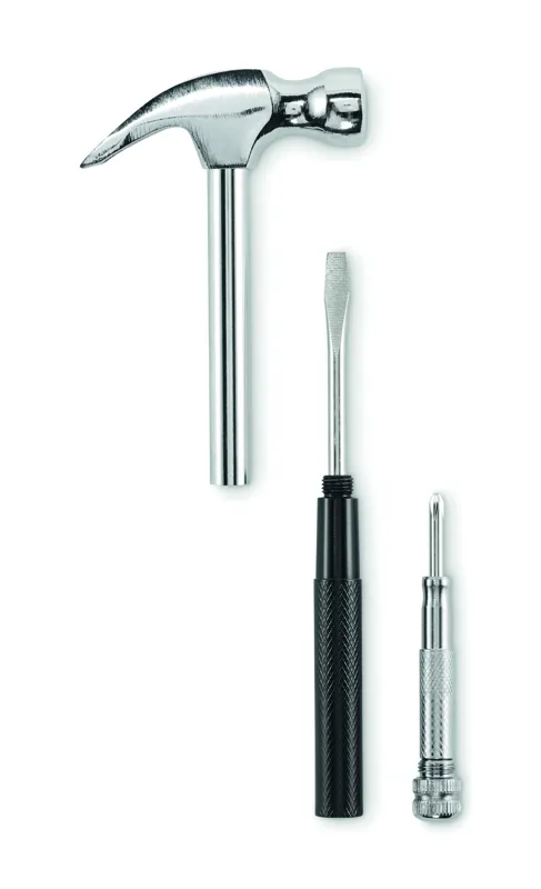 Szöghúzó kalapács és csavarhúzó szénacélból, 4 db beépített csavarhúzófejjel a nyélben.