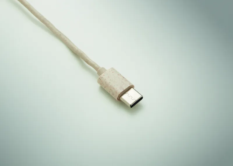 Kábelkészlet búzaszalma/ABS tokban, bambusz fedéllel, karabinerrel. A fedél vízszintes helyzetben telefonállványként használható. Bemenet 2 az 1-ben USB-C/A, kimenet C-típusú és 2 az 1-ben csatlakozó.