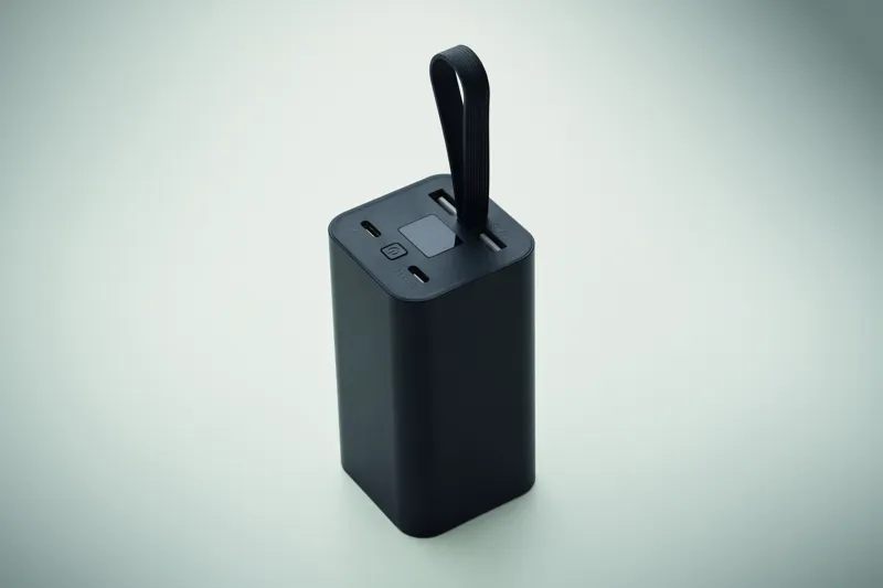 20000 mAh kapacitású powerbank újrahasznosított alumíniumból, digitális töltöttségjelzővel és szilikon akasztóval. Két C-típusú és két USB-A kimenettel, 65 W PD (Power Delivery) gyorstöltéssel.