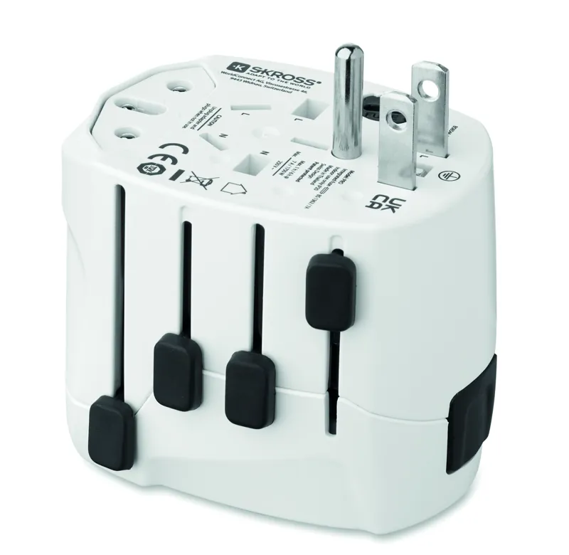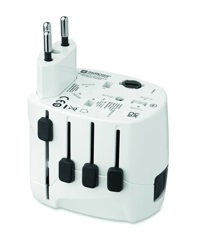 SKROSS® PRO — univerzális, 3 pólusú utazó adapter Európába, az USA-ba/Japánba, Ausztráliába és Kínába. Földelt kivitel az extra biztonságért.