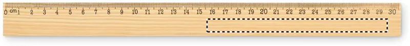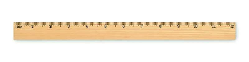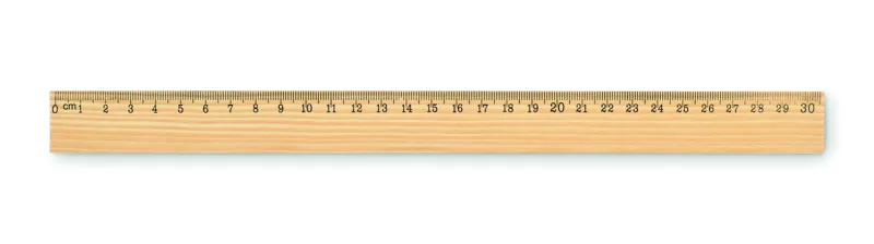 30 cm-es fenyőfa vonalzó, egyik oldalán centiméteres, a másikon hüvelykes skálával.