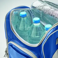 Hűtőtáska elülső zsebbel. 600D poliészter anyagból. Szigetelő anyag: alumínium fólia. Űrtartalom 13 l.