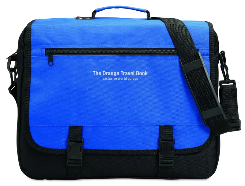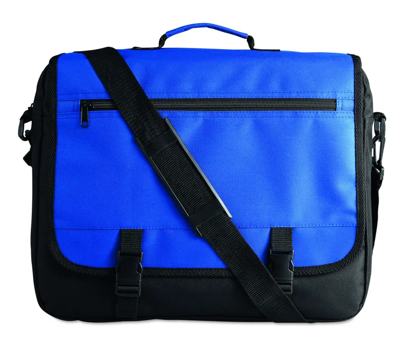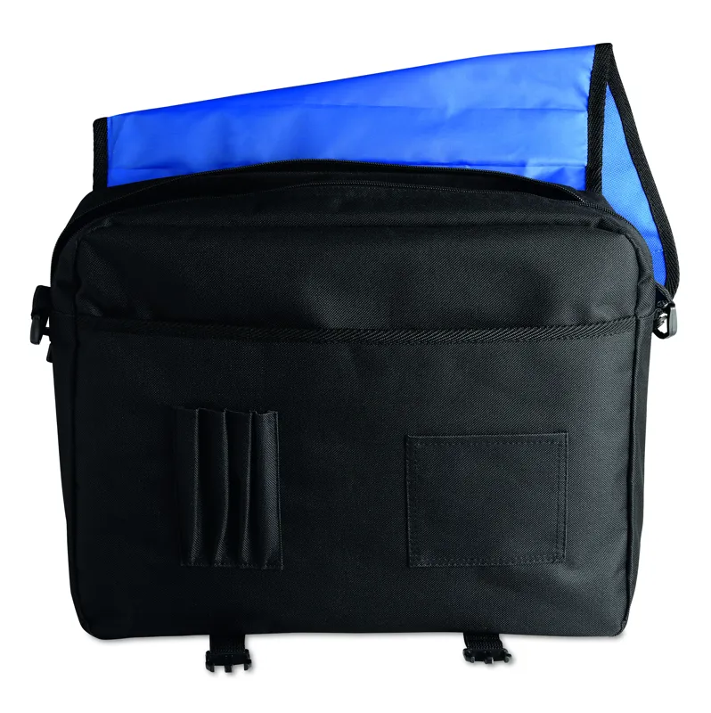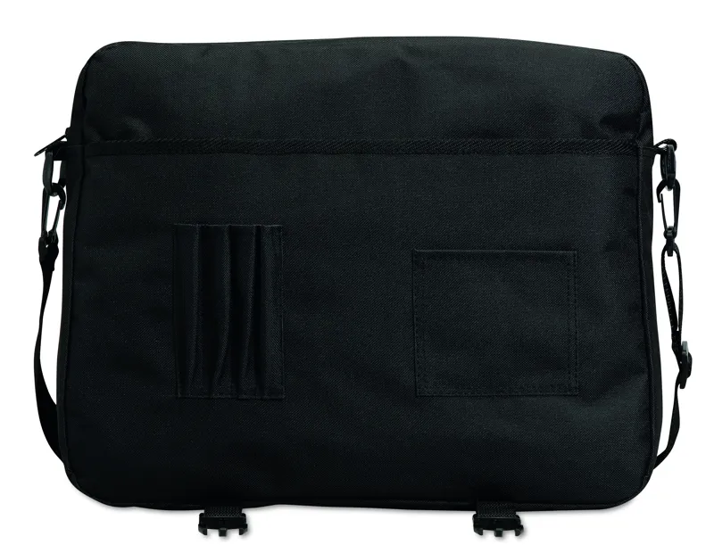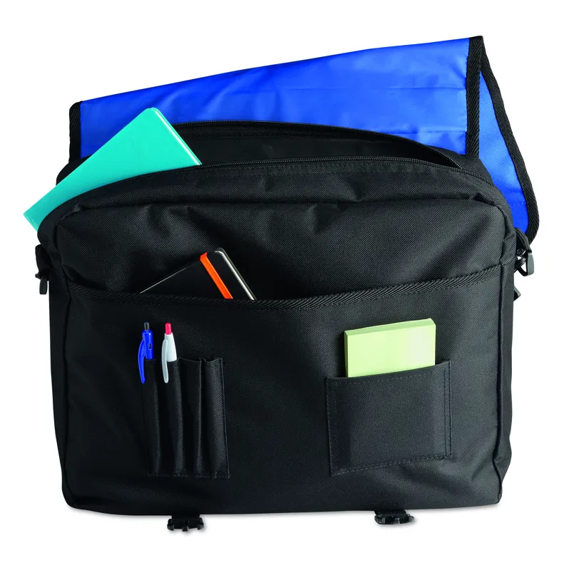 Irattáska 600D poliészter anyagból. Cipzározható rekesszel, több zsebbel, levehető és állítható vállpánttal.