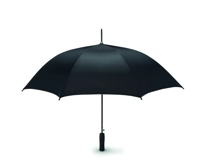 23 colos automata esernyő 190T pongee anyagból. Fekete fém nyél és váz. Fekete műanyag végek. Fekete egyenes, EVA markolat. Manuális záródás.