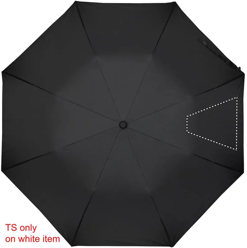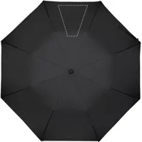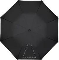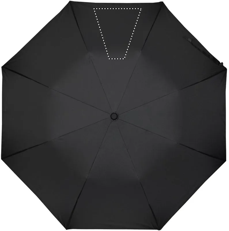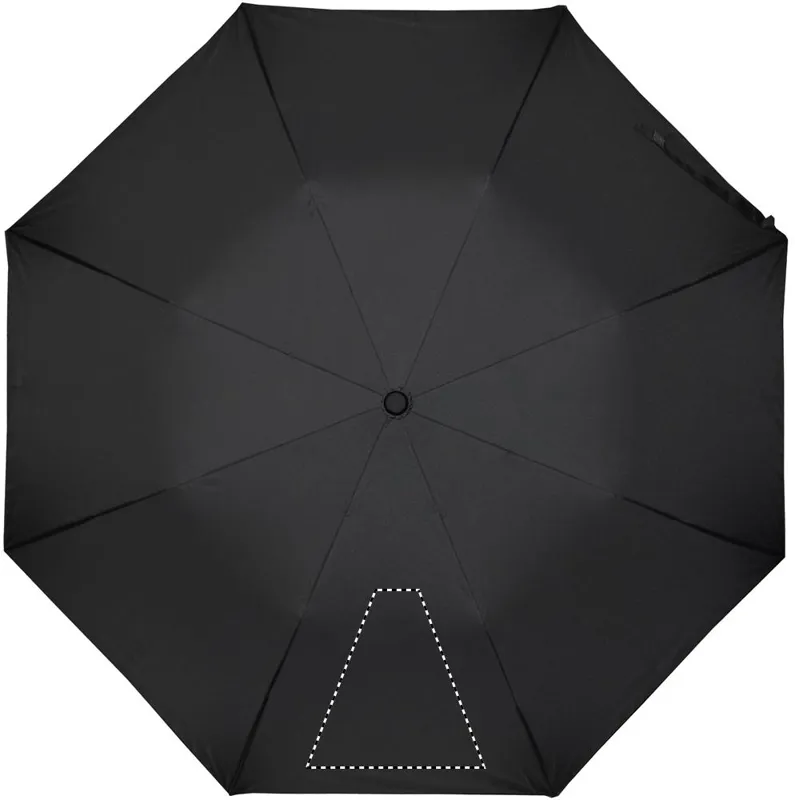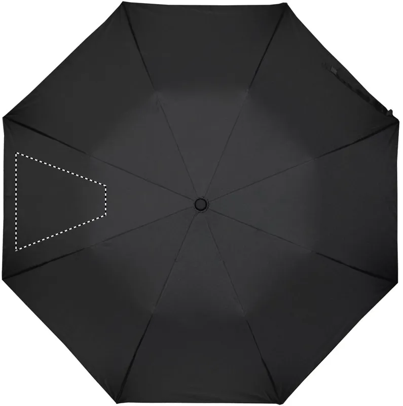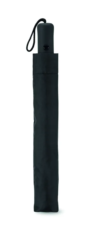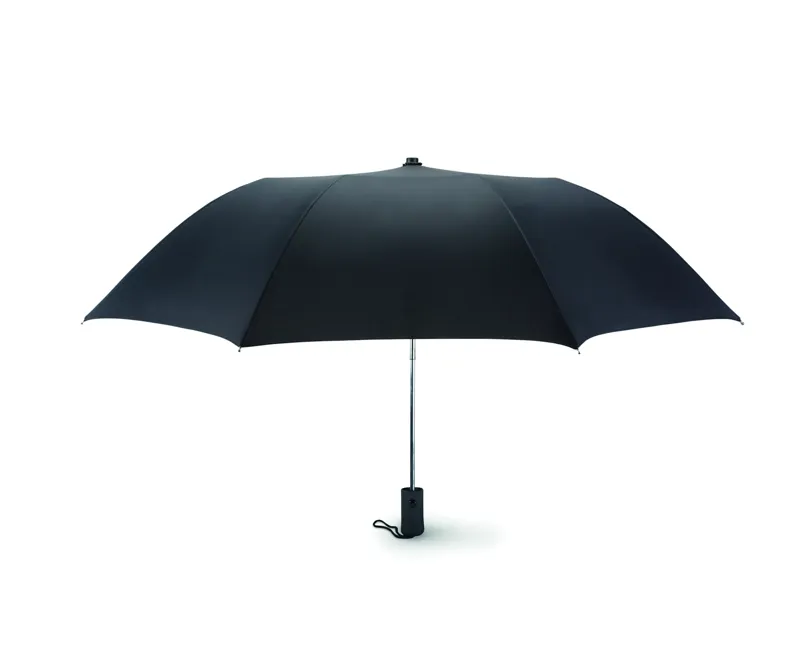 21 colos automata, 2 szakaszos összecsukható esernyő 190T nyersselyem anyagból. Galvanizált acél nyél, váz és csúcsok. Fekete gumírozott ABS markolat. Hozzáillő tokban. Manuális záródás.
