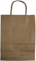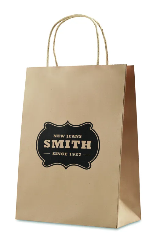 Közepes méretű, újrahasznosított papír ajándéktáska. 150 g vastag papír.