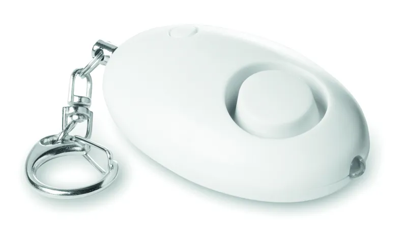 Mini ABS riasztó. A kulcstartó meghúzásával aktiválható. 1 fehér LED fénnyel. A működéshez szükséges 3 db AG13 elemmel szállítjuk.