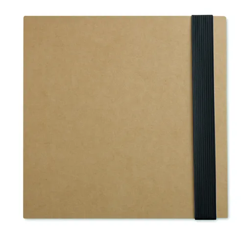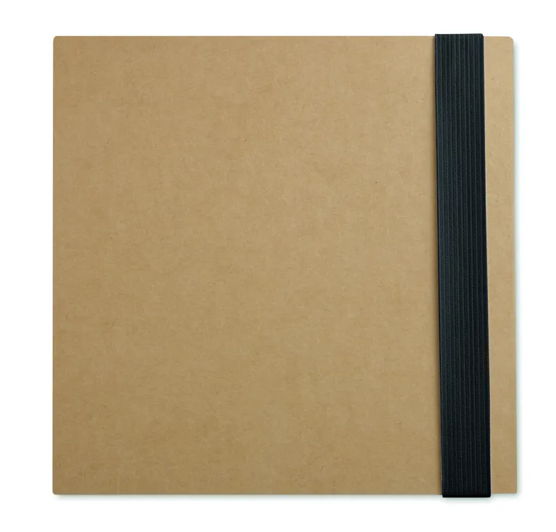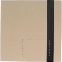 Jegyzetfüzet újrahasznosított kartonborítóval. 100 sima lapos jegyzettömb. 3 féle öntapadós jegyzetelő. Nagy és közepes méretű sárga öntapadós jegyzettömbök és 5 különböző színű oldaljelölő. Hozzáillő nyomógombos golyóstoll papír tolltesttel. Elasztikus zárópánttal. FSC®-certified | FSC MIX, P7.1, FSC-C213206