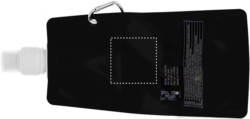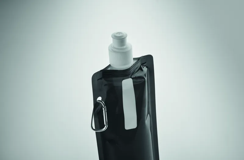 Összehajtható vizes palack BPA-mentes PET műanyagból. Alumínium karabinerrel. Űrtartalom: 480 ml. Szivárgásmentes.