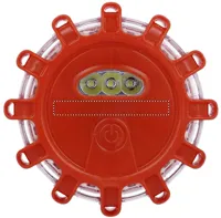 Autós vészjelző fény 5 LED-del. Világítási módok: egyenletes, csak a tetején, forgó, pislákoló és villogó. Ki- és bekapcsolás. Részben gumírozott, átlátszó ház. Mágnessel és összecsukható akasztókkal az alján. 3 db AAA elemmel működik, elem nélkül szállítjuk.