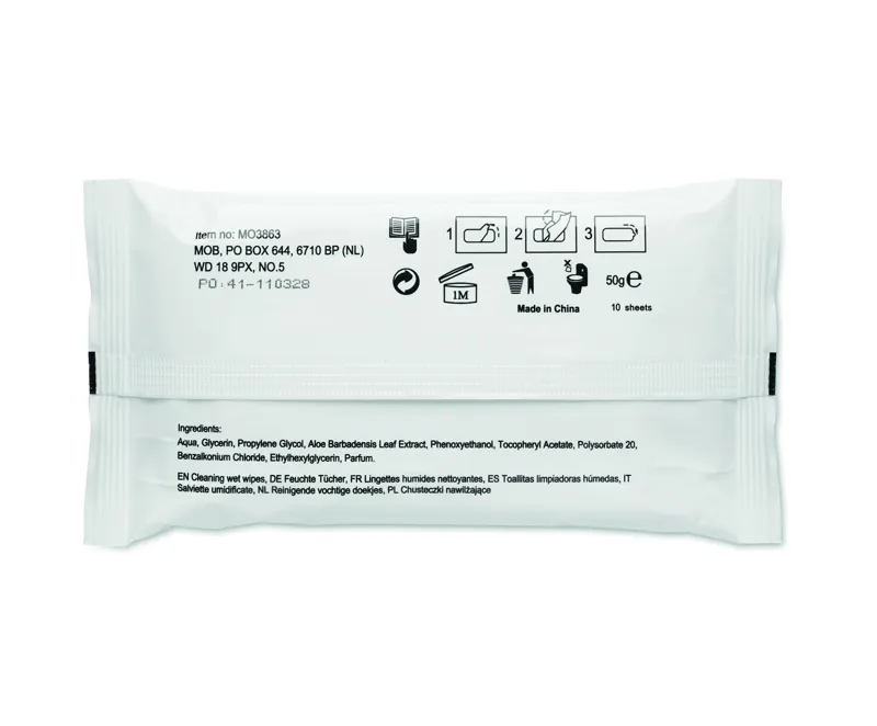 10 db előre nedvesített törlőkendő tasakban. Kihajtott méret: 15x20cm. Ez a termék kozmetikai cikk besorolású.