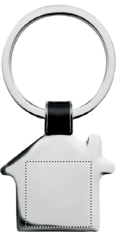Ház alakú fém kulcstartó, fényes nikkel kivitelben.