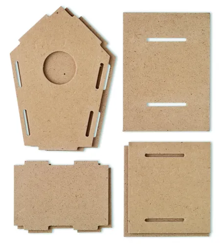 Összerakható MDF fa madáretető.