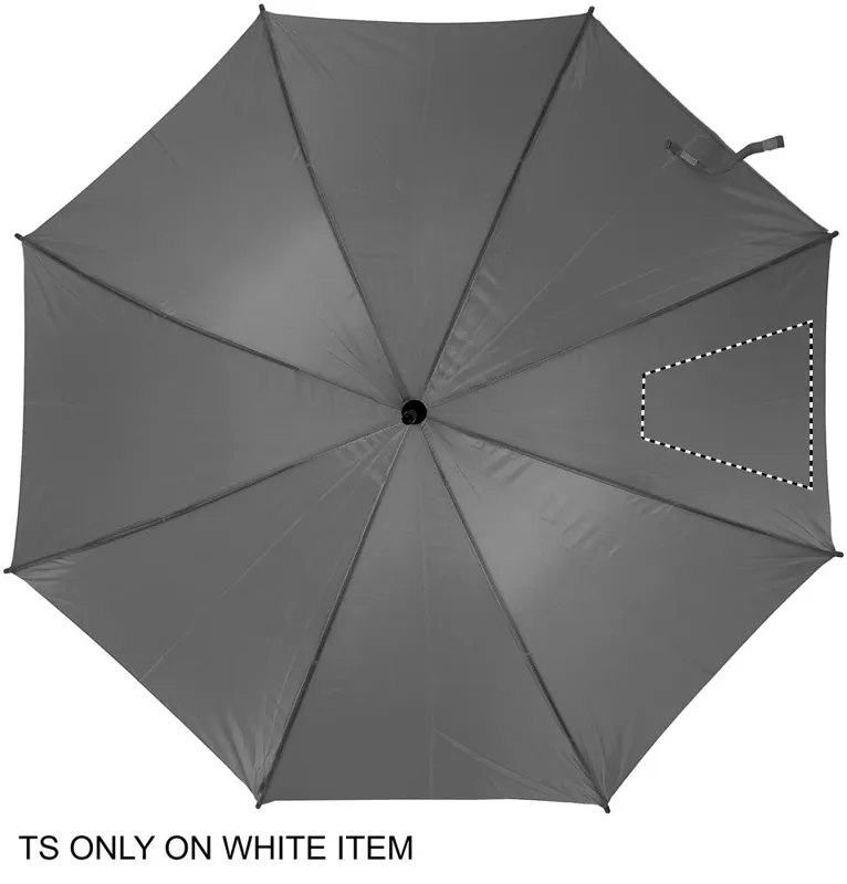 23 colos manuális esernyő 190T poliészter anyagból. Fa markolat, rúd és csúcsok. Fekete bevonatú fém bordák.