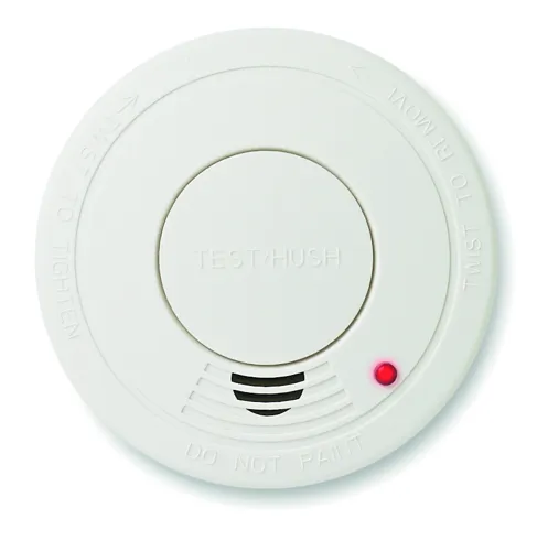 Műanyag füstérzékelő piros jelzőfénnyel. 2 csavarral a könnyű rögzítés érdekében. A működéshez szükséges 9 V-os elemmel szállítjuk.