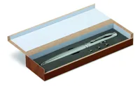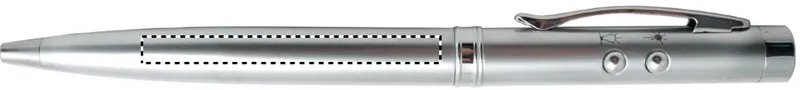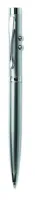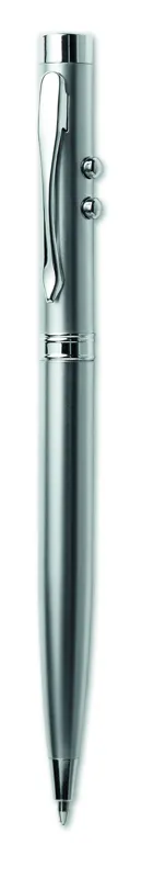 Multifunkciós ezüst toll. Kéken író betéttel, fehér LED fénnyel, piros lézermutatóval. A működéshez szükséges 3 db LR41 gombelemmel szállítjuk. Fadobozban. II. osztályú biztonsági besorolás.