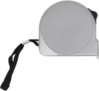 2 méteres mérőszalag matt ezüst házzal. ABS anyagból. Csuklópánttal és fényes, ezüstös, övre akasztható csíptetővel.