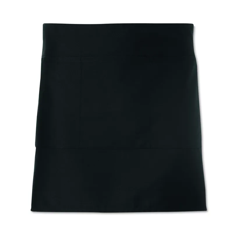 Rövid konyhai félkötény. 195 g vastag anyag, 90% poliészter, 10% pamut.