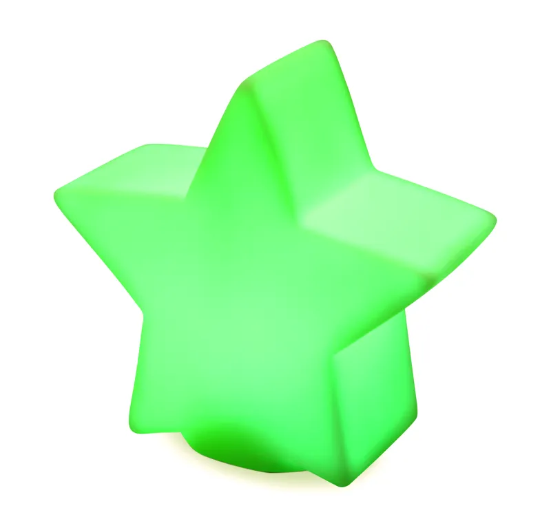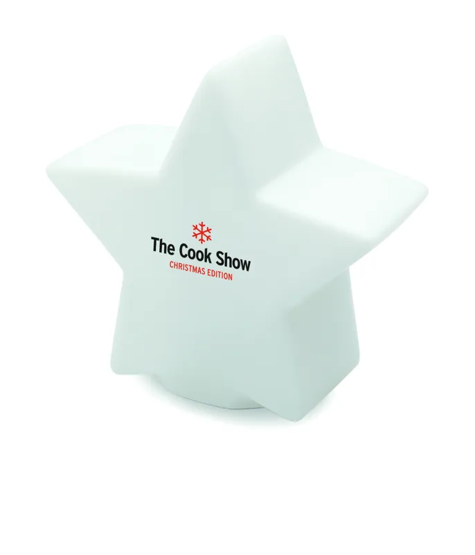 Csillag alakú PVC hangulatvilágítás váltakozó LED fénnyel: fehér, kék, lila, piros, sárga és zöld. A 3 LR44 elemmel szállítjuk.
