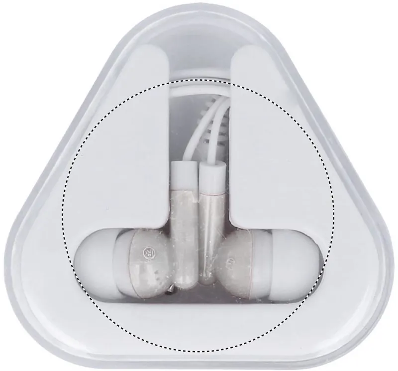 Fülhallgató háromszög alakú PS tokban. A kábel hossza: 120 cm.