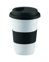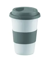 Szimplafalú kerámia bögre szilikon tetővel és markolattal. Űrtartalom: 400 ml. A kerámia transzfer mosogatógépben mosható. Mivel ez egy szimplafalú bögre, hőátadás lehetséges.