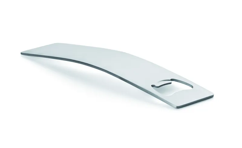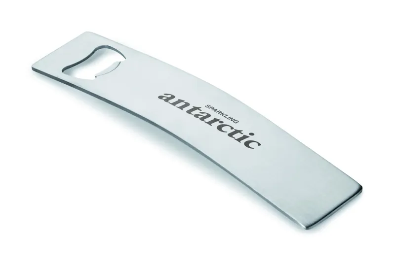 Elegáns, hajlított üvegnyitó ellenálló rozsdamentes acélból.