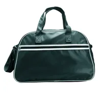 Sporttáska matt PVC anyagból, fehér díszítéssel. Cipzározható elülső zsebbel, állítható vállpánttal.