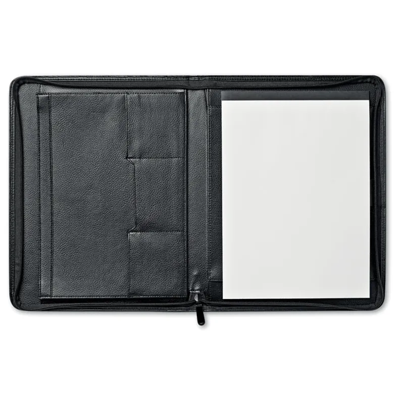 A4 konferenciamappa rostbőr borítással. Cipzárral. 25 sima lapos jegyzettömb. 4 belső rekesz. Tolltartó.