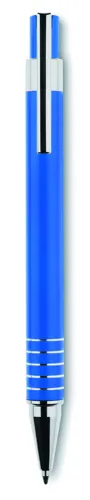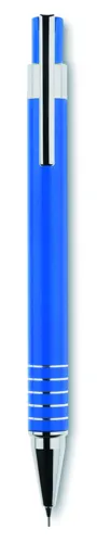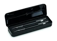 Alumínium íróeszköz készlet. Tartalma: kéken író golyóstoll és mechanikus ceruza. Hozzáillő fém dobozban.