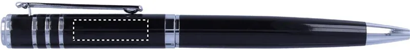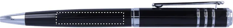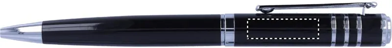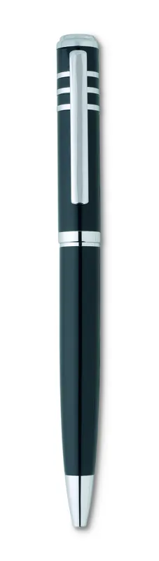 Fényes, lakkozott kivitelű fém golyóstoll karton díszdobozban. Feketén író betéttel.
