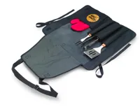BBQ kötény 600D poliészter anyagból. Különféle eszközökkel és fogókesztyűvel.