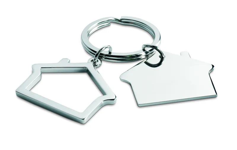 Ház alakú fém kulcstartó, fekete ajándékdobozban.